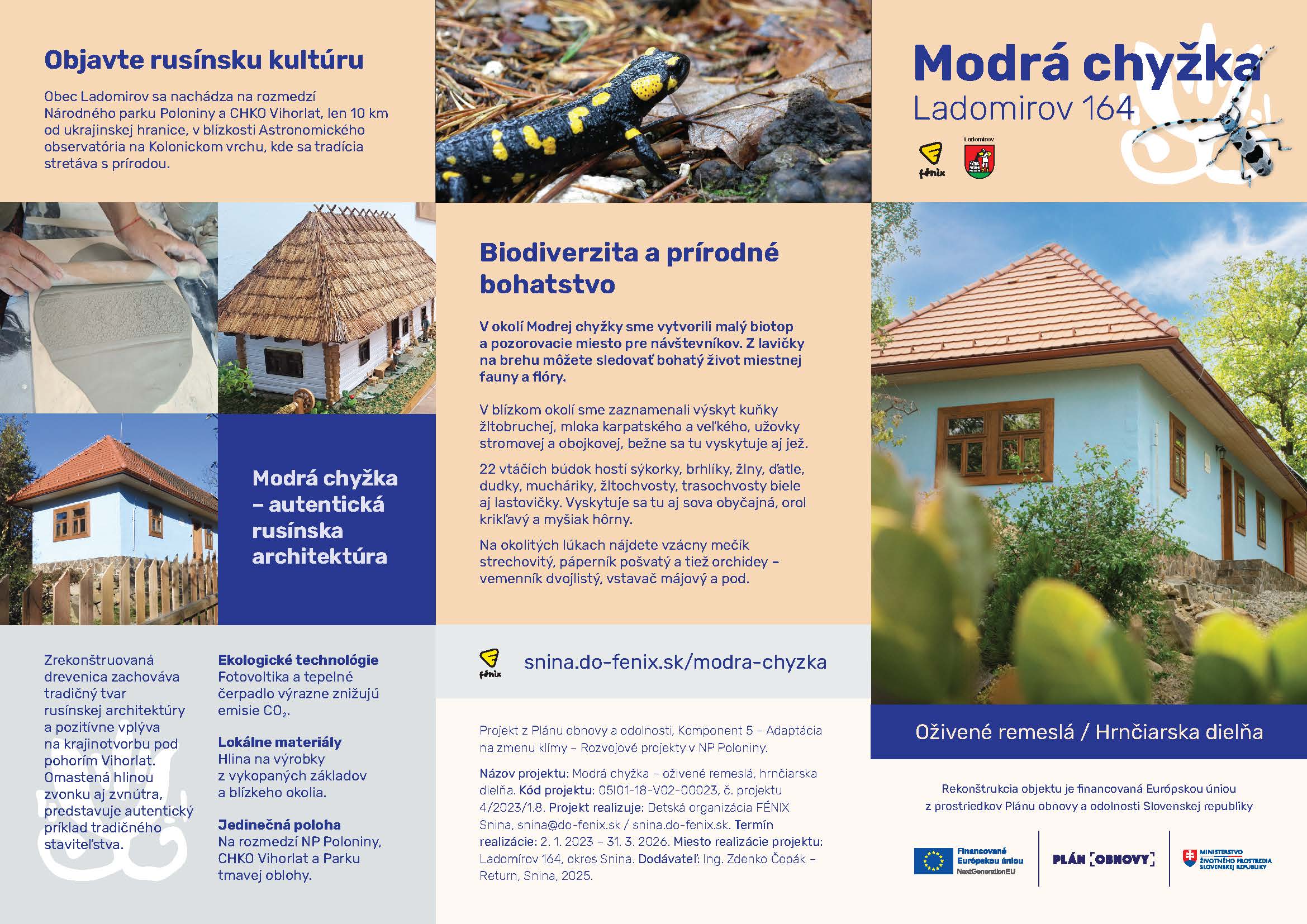 Ďalším výstupom z realizovaného projektu je leták o Modrej chyžke.